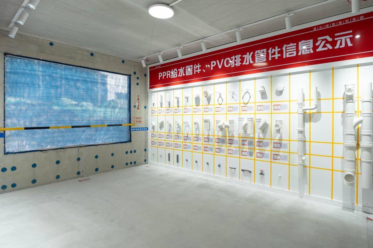 来到长沙润府(润玺组团)的“放心工厂”,可以看到建设过程中的材料都有公示,包括防水材料、土建材料、管件材料等,让过程监管可追溯。