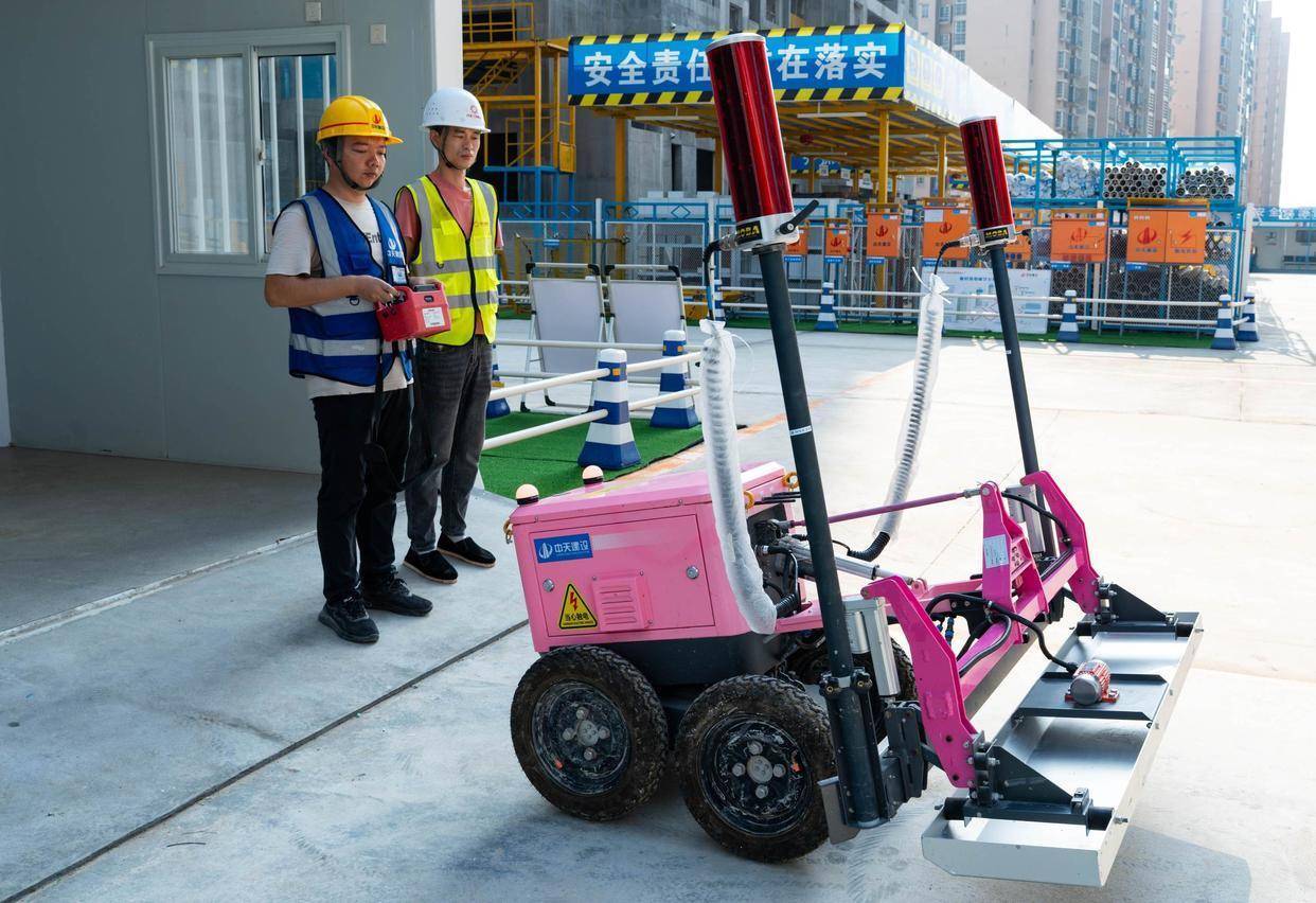除了智慧工地管理平台,机器人的运用也是重要一环。项目在施工过程中,运用地面整平机器人、地库喷刮打磨一体机器人和实测机器人等,这些建筑机器人搭载了智能运动控制算法、高精度激光识别测量和实时控制技术,在施工精度、效率提升和降低工人劳动强度等方面表现出色。